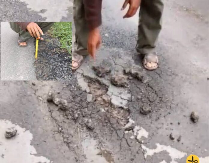 “Buktinya baru genap 1 bulan aspal sudah rusak dan mengelupas tanpa diperbaiki kontraktor pelaksana,”Ujarnya Warga.
