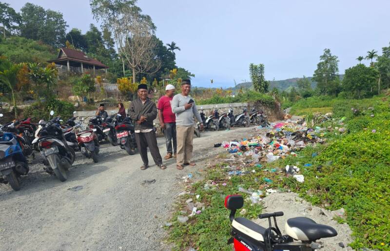Sebab, segunung tumpukan sampah busuk menyengat hidung terhampar dibuang sembarangan oleh warga masyarakat sekitar lokasi kuburan guguk tanpa mengindahkan himbauan pemerintah daerah.