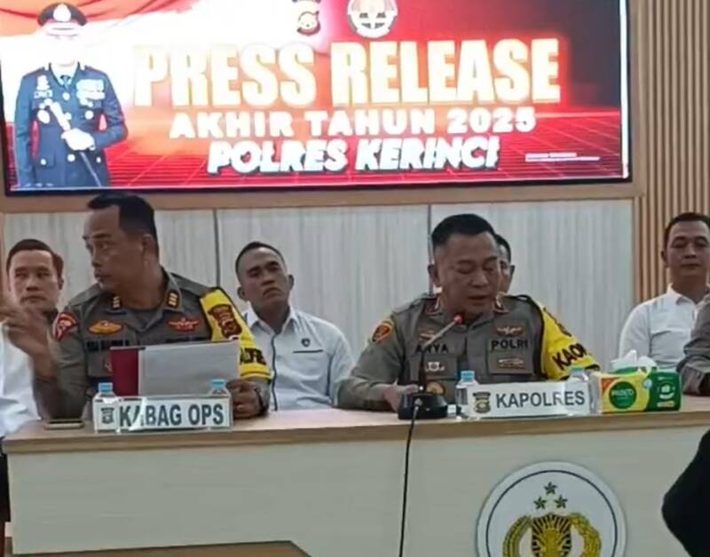“Pada jumpa press yang berlangsung,Senin (29/12/2025) bertempat di Aula Tribrata Lantai II Mapolres Kerinci, Kapolres Kerinci AKBP Arya Tesa Brahmana S.I.K didampingi Waka Polres,Kabag Ops, para Kasat serta Pejabat Utama (PJU) dilingkungan Polres Kerinci.