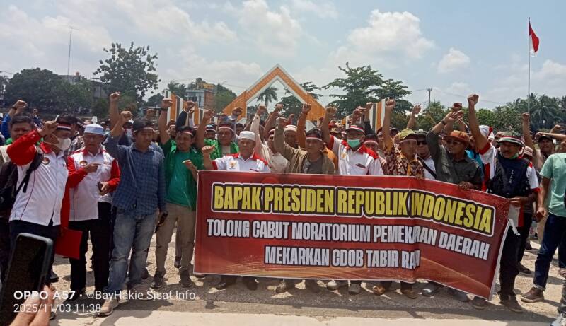 Siasatinfo.co.id Berita Merangin – Ratusan elemen masyarakat yang tergabung dalam wilayah Kecamatan Tabir Serumpun menggelar aksi damai di halaman Kantor Bupati Merangin, Senin 3/11/12. Mereka meminta pemerintah mencabut moratorium untuk pemekaran wilayah Tabir Raya.