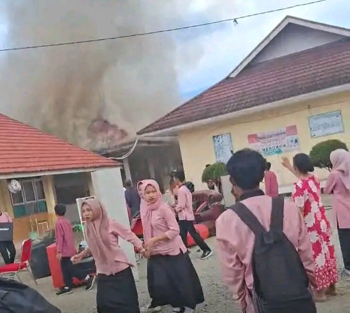 Siasatinfo.co.id, Berita Kerinci – Kebakaran hebat terjadi lagi, kali ini SMKN 5 Kerinci bertempat di Desa Belui, Kecamatan Depati Tujuh, Kabupaten Kerinci Jambi dilalap si jago merah, Jum’at (14/11/2025) sekitar pukul 09:00 WIB.