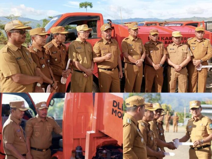 Sebanyak lima unit kendaraan operasional pengangkut sampah diserahkan langsung oleh Bupati Kerinci kepada masing-masing camat penerima.