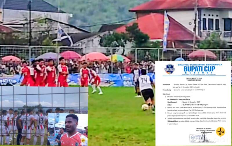 Informasi diperoleh Siasatinfo.co.id, keputusan tanding ulang berdasarkan surat keputusan panitia turnamen sepakbola Bupati Cup Nomor: 039/BC/XI/2025.