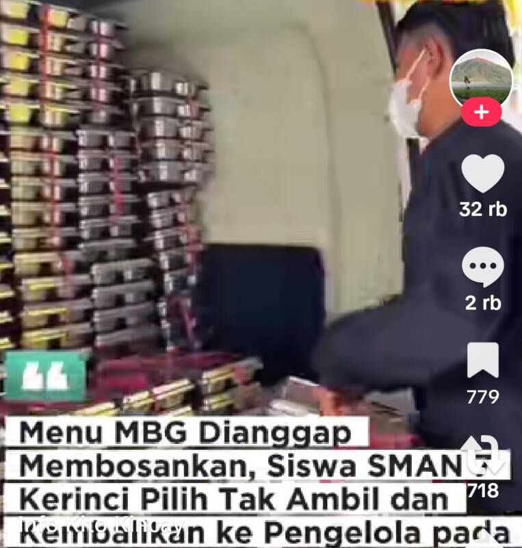 “Maaf ya mas dibawa balik lagi, karena mereka pada tidak mau menunya ini,”ujar salah satu ibu guru yang merekam video saat si supir sibuk mengangkat ratusan kemasan MBG masuk mobil kembali.